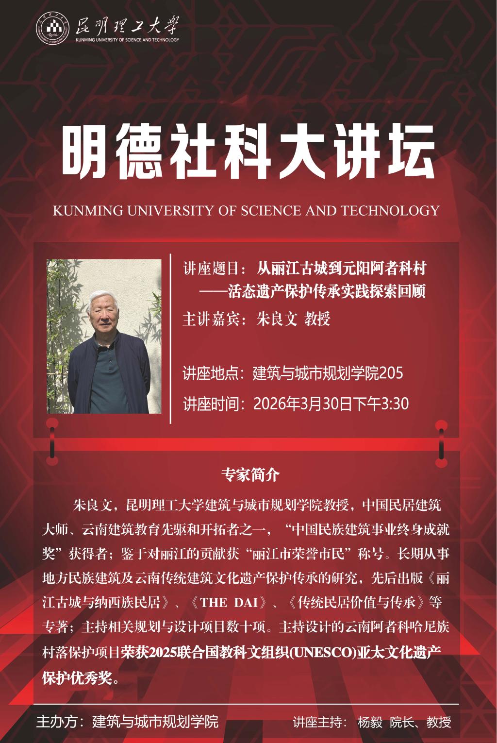 明德社科大讲坛:从丽江古城到元阳阿者科村——活态遗产保护传承实践...